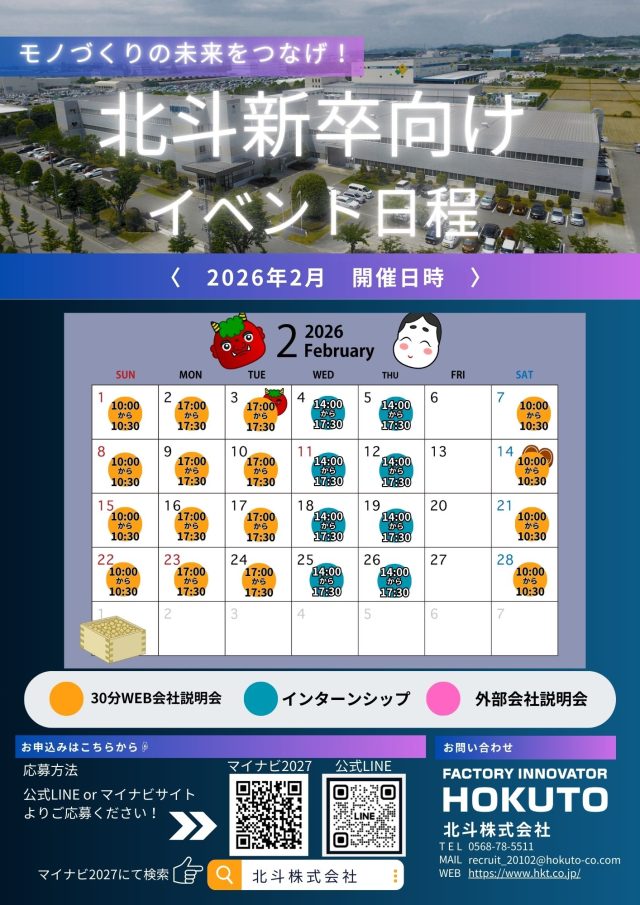 プロフェッショナルラインビルダー・北斗株式会社は、2027年新規学者向けの2月度会社説明会およびインターンシップの予定を広報いたします。